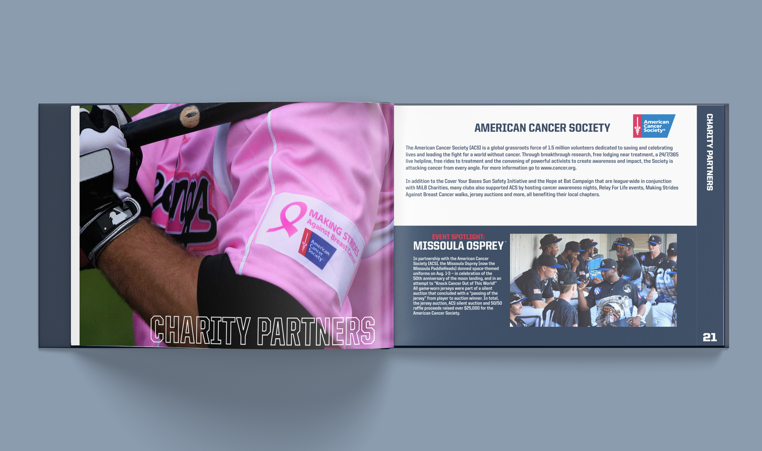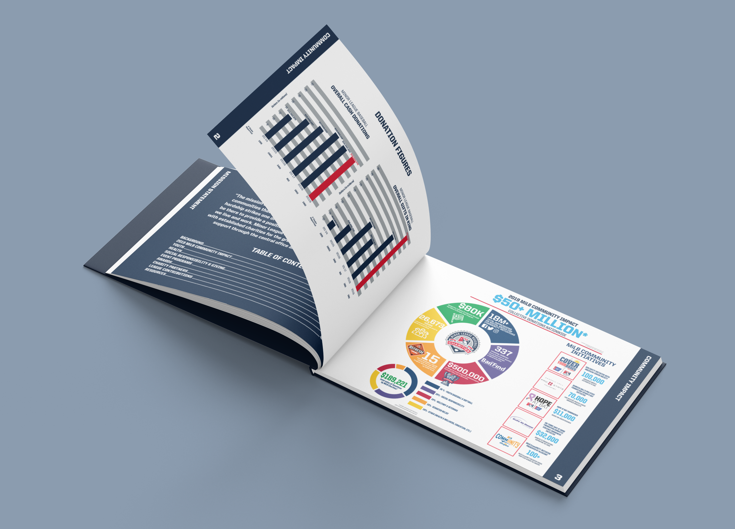 I also led the creation and development of the 2019 Community Report, which serves to highlight the philanthropic efforts and successes of the league and teams. In 2019, MiLB clubs collectively reported over $50 million dollars in cash and in-kind donations to our communities. The community reports were sent to over 3,000 stakeholders across the country.